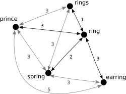 Figure 1: The edit-distance between keywords. The five keywords create a keyword space that cannot be accurately embedded into a plane.