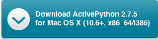 Go to the ActiveState web page and download the free Community Edition of Python 2.7.5 (or other number starting with 2.7). You can do this by clicking on the big blue button on the right. Make sure you do not have Python 3.2.2 (or any other number starting with 3). Python 3 is “bleeding-edge” software and too new to safely use in this course (particularly because it is not backwards compatible with Python 2.7). Just to say it one more time, if you are running Mac OS 10.9, do not install ActiveState Python; it will not work. Instead, follow the Mavericks instructions below. When you download this file, you will get a web page asking you to fill in some information. Ignore this web page. You do not need to fill in the information; your download has started already. The file that you download is a DMG. Double click on it and it will turn into a virtual disk drive containing a package installer (an icon that looks like a brown box). Double click on the package installer and follow the directions.
