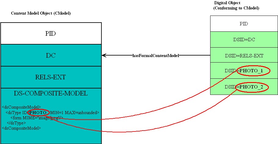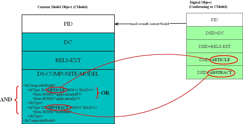 Datastream Composite Model: an XML specification of datastream constraints for objects that conform to the content model, stored in the CModel object.