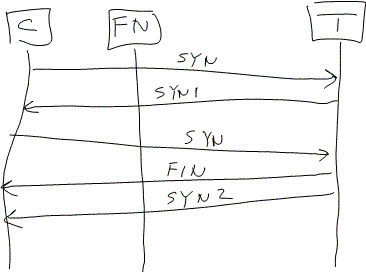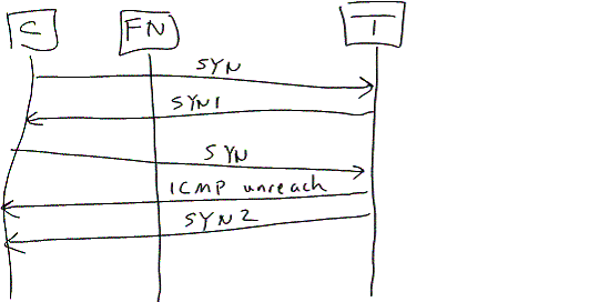 5. How does the NAT box deal with ICMP unreachables? This is similar to the FIN issue, and can be tested the same way, except using ICMP instead of FIN (see Figure 2).