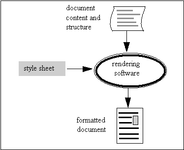 Structure and appearance are related by the design of the document. In conventional publishing, the designer creates a design specification, which describes how each structural element is to appear, with comprehensive rules for every situation that can arise. The specification is known as a style sheet. It enables a compositor to take a manuscript, which has been marked-up by a copy editor, and create a well-formatted document. Figure 9.1 is an outline of the procedure that several journal publishers use to produce electronic journals. Articles received from authors are marked up with SGML tags, which describe the structure and content of the article. A style sheet specifies how each structural element should appear. The SGML mark-up and the style sheet are input to rendering software which creates the formatted document.
