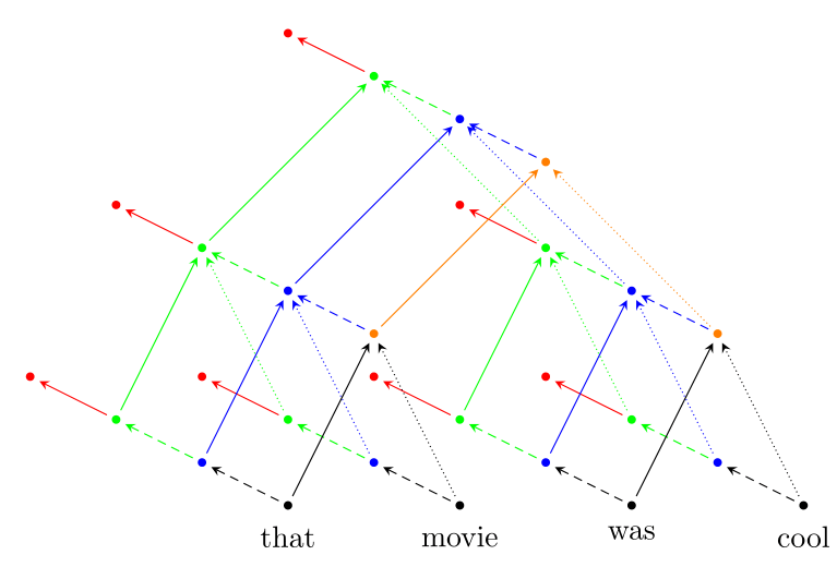 Deep Recursive Neural Networks for Compositionality in Language O. Irsoy, C. Cardie NIPS, 2014, Montreal, Quebec. TL;DR : We stack multiple recursive layers to construct a deep recursive net which outperforms traditional shallow recursive nets on sentiment detection. ![]() This figure is supposed to summarize the whole idea. Abstract : Recursive neural networks comprise a class of architecture that can operate on structured input. They have been previously successfully applied to model compositionality in natural language using parse-tree-based structural representations. Even though these architectures are deep in structure, they lack the capacity for hierarchical representation that exists in conventional deep feed-forward networks as well as in recently investigated deep recurrent neural networks. In this work we introduce a new architecture — a deep recursive neural network (deep RNN) — constructed by stacking multiple recursive layers. We evaluate the proposed model on the task of fine-grained sentiment classification. Our results show that deep RNNs outperform associated shallow counterparts that employ the same number of parameters. Furthermore, our approach outperforms previous baselines on the sentiment analysis task, including a multiplicative RNN variant as well as the recently introduced paragraph vectors, achieving new state-of-the-art results. We provide exploratory analyses of the effect of multiple layers and show that they capture different aspects of compositionality in language. Poster : Presentation is available here. Slides : Part of this talk I gave at Cornell AI seminar was based on this work. Code : My C++ code is here. Please cite the paper if you use it. Data : We use Stanford Sentiment Treebank for experimental evaluation. You should cite the appropriate paper by Socher et al if you use the dataset. I found this particular format to be easier to work with, and my code takes this format. Bibtex: @incollection{irsoy-drsv, title = {Deep Recursive Neural Networks for Compositionality in Language}, author = {\.Irsoy, Ozan and Cardie, Claire}, booktitle = {Advances in Neural Information Processing Systems 27}, editor = {Z. Ghahramani and M. Welling and C. Cortes and N.D. Lawrence and K.Q. Weinberger}, pages = {2096--2104}, year = {2014}, publisher = {Curran Associates, Inc.}, url = {http://papers.nips.cc/paper/5551-deep-recursive-neural-networks-for-compositionality-in-language.pdf}, location = {Montreal, Quebec} } |