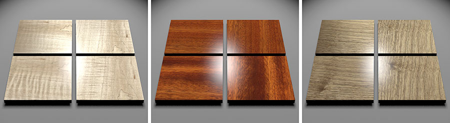Wood coated with transparent finish has a beautiful and distinctive appearance that is familiar to everyone. Woods with unusual grain patterns, such as tiger, burl, and birdseye figures, have a strikingly unusual directional reflectance that is prized for decorative applications. With new, high resolution measurements of spatially varying BRDFs, we show that this distinctive appearance is due to light scattering that does not conform to the usual notion of anisotropic surface reflection. The behavior can be explained by scattering from the matrix of wood fibers below the surface, resulting in a subsurface highlight that occurs on a cone with an out-of-plane axis. We propose a new shading model component to handle reflection from subsurface fibers, which is combined with the standard diffuse and specular components to make a complete shading model. Rendered results from fits of our model to the measurement data demonstrate that this new model captures the distinctive appearance of wood.