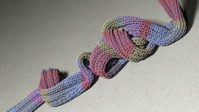 Knitted fabric is widely used in clothing because of its unique and stretchy behavior, which is fundamentally different from the behavior of woven cloth. The properties of knits come from the nonlinear, three-dimensional kinematics of long, inter-looping yarns, and despite significant advances in cloth animation we still do not know how to simulate knitted fabric faithfully. Existing cloth simulators mainly adopt elastic-sheet mechanical models inspired by woven materials, focusing less on the model itself than on important simulation challenges such as efficiency, stability, and robustness. We define a new computational model for knits in terms of the motion of yarns, rather than the motion of a sheet. Each yarn is modeled as an inextensible, yet otherwise flexible, B-spline tube. To simulate complex knitted garments, we propose an implicit-explicit integrator, with yarn inextensibility constraints imposed using efficient projections. Friction among yarns is approximated using rigid-body velocity filters, and key yarn-yarn interactions are mediated by stiff penalty forces. Our results show that this simple model predicts the key mechanical properties of different knits, as demonstrated by qualitative comparisons to observed deformations of actual samples in the laboratory, and that the simulator can scale up to substantial animations with complex dynamic motion.