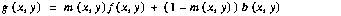 where g is the output image, m is the mask, f is the foreground, and b is the background. Since the only operations that are used in this processing are pixel-wise multiplication, scalar addition, and pixel-wise addition, the operation can be mapped into the compressed domain. For typically applications, the compressed domain operator is about 10 to 50 times faster than the corresponding spatial domain implementation [13].