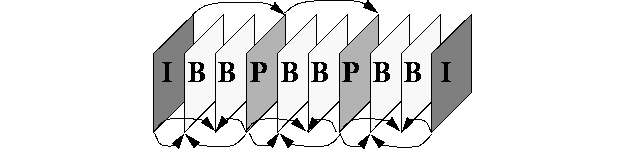 Although JPEG is very effective at compressing still images, further compression can be achieved using the MPEG video standard [8]. MPEG augments JPEG with motion compensation, a form of differential encoding, and achieves compression ratios as high as 200 to 1. In MPEG, each frame in a video sequence is encoded as either an I-frame, a P-frame, or a B-frames. A typical frame sequence is shown in figure 4, along with the inter-frame dependencies. I-frames are independent of other frames, and their encoding is almost identical to JPEG.