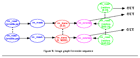To understand the utility of caching images, consider the evaluation of the graph in figure 9. The output of the im_mask node is used many times; it is advantageous to cache this image. The Rivl memory manager detects this case, freeing each image only when it is no longer needed in the current graph evaluation.
