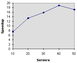 to the number of servers, 20 servers can reach a 14 times speedup,