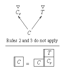 As in the merge cases of Figure 9, the supertype S must either be on a simple supertype chain above T, or, if it is exposed at the start of (i.e., x is empty), on a primary supertype chain above T. Thus, Rule 3 is analogous to the earlier Rule M2.