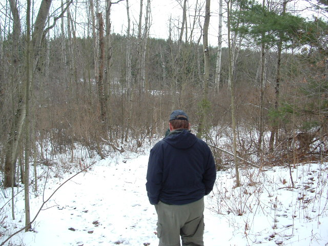 | Dave inspecting animal tracks at Hills Creek (Jan 2006) |