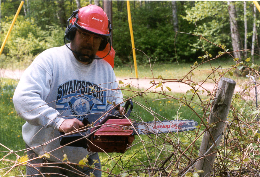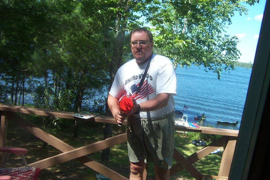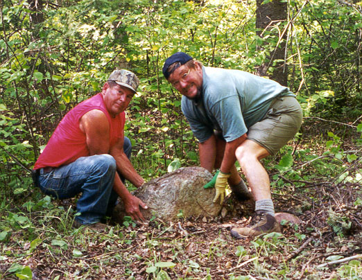 | How to lift a rock: best get Leo to help (Minn, June 2000). |