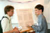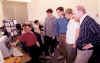 | S. Keshav, Juris Hartmanis and Kay Wagner | Carla Gomes listens to Pedro Felzenszwalb explain Recognizing Flexible Objects |