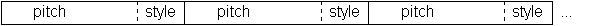 Within each bin, the first 7 bits represent the pitch of the note, on a midi scale of 0 to 127. The last 2 bits in the bin represent the "style" of the bin. The style is either a link to the next bin, a rest, or the end of a note. In this way, several adjacent bins with the style of link combine to form longer notes. Since there are only 3 style possibilities, and 4 possible permutations of the 2 style bits, we allow 2 of the permutations to represent the link style, so that our initial random subjects, and mutations that occur will tend to favor linking notes together, so that we do not simply end up with lots of 16th notes.