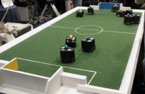 The international RoboCup competition entails the construction of fully autonomous, fast-moving robots, which work together as a team to compete against similar teams of robots in a robotic soccer match. The soccer matches are played by teams composed of five robots. Similar to the real game of soccer, the objective is to score more goals than the opponent, subject to well-defined rules and regulations. The robots are permitted to communicate via wireless transceivers to each other or to a global-decision-making computer. A global vision system (typically a video camera) may be used for global robot (including the opposition) and ball position determination. Functionally, the robots can be broken down into essentially three subsystems: electromechanical (the chassis, the drive unit, the passing unit, and the local sensors), communication (the wireless transceiver), and local control (a microcontroller). The coordination of the robots is typically handled by a workstation, which has access to the global visual feed and which can communicate with each robot.