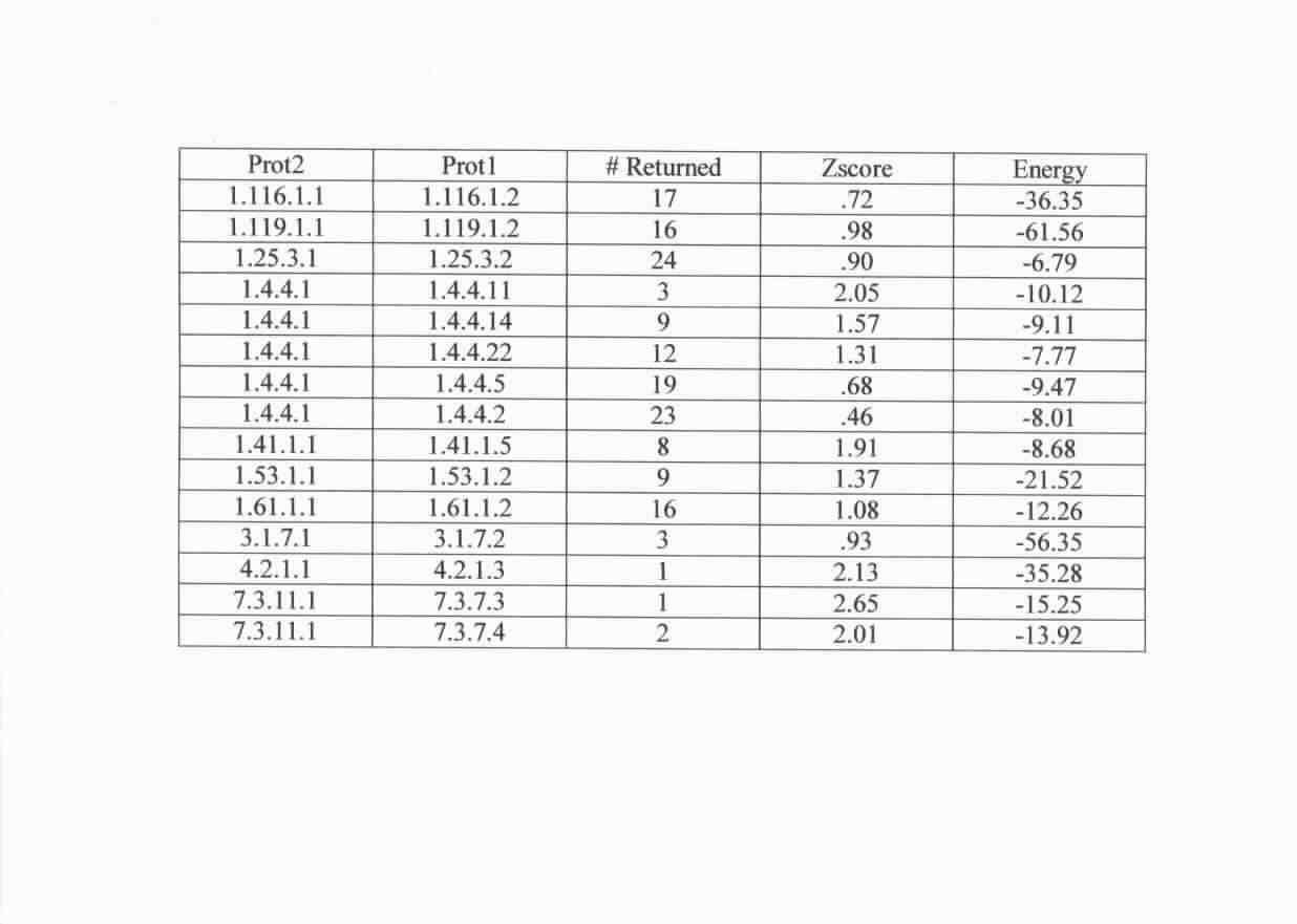 For testing, all the different ways of comparing sequences to structures, sequences to sequences and structures to structures must be computed. For comparing sequences to structures, also known as threading, we can compare by global alignment, where the whole sequence is aligned to the entire structure or local alignment, where the best fragments of the sequence and the structure are matched. There are many ways of calculating the energy within threading. Some of there include, off-lattice comparisons, contact pairwise potentials, continuous pairwise potentials, and profile onion models (THOM2). Looking at all of these different tests, one needs to determine which methods of calculating the Z-score and the energy are the best. At the present time, we believe that THOM2 is the best method we have, but we are trying to see if maybe a linear combination of the different methods may actually give us better results than just one specific method. We also need to compare results between sequence to structure alignment and sequence to sequence alignment. The sequence to structure alignment may give us the best energy for a particular sequence, but a similar sequence with a known structure may also be a good approximation of what the real structure should look like.