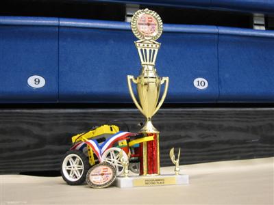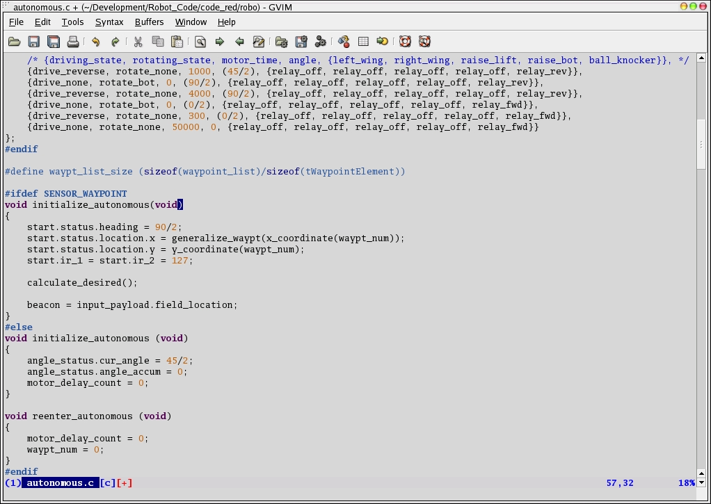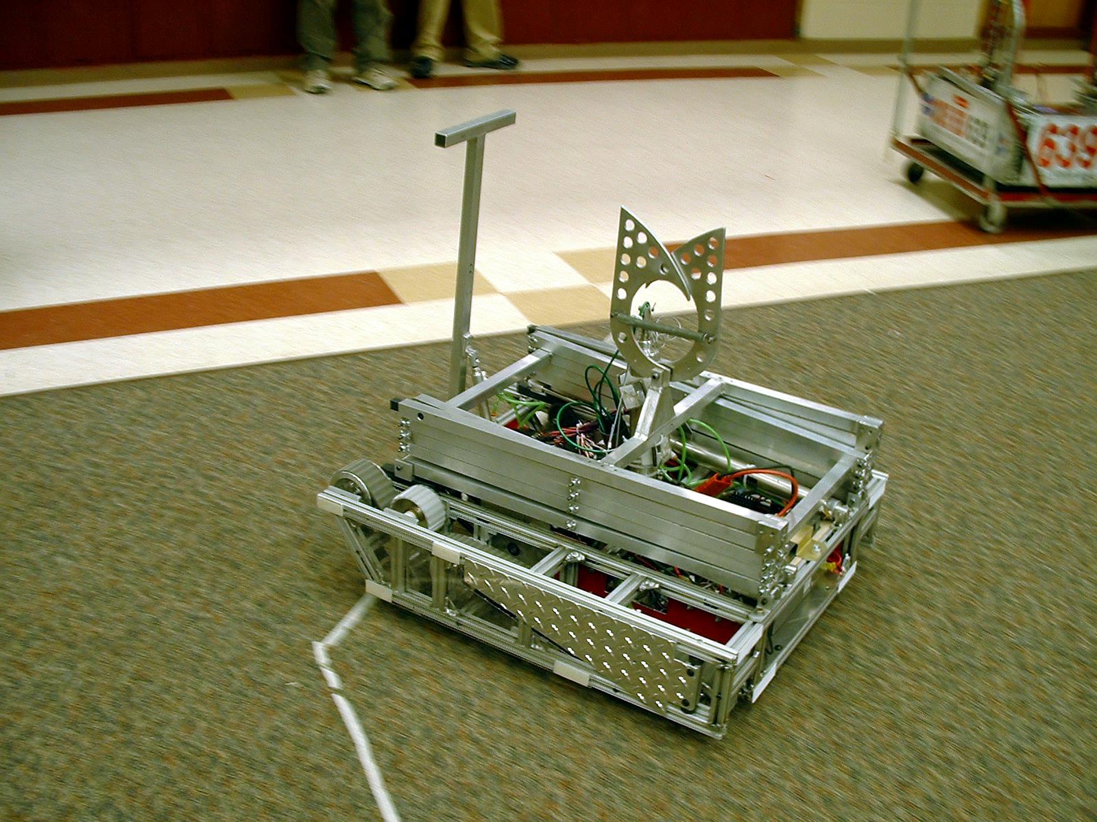 For the 2004 FIRST robotics season, the task of programming the robot was made significantly more interesting and challenging with the switch from the PBASIC programming language to C. As well, the autonomous mode in which the robot navigates without driver intervention is now a much more integral part of the game- if the robot does not complete a certain task during autonomous, the whole alliance is at a significant disadvantage. Given the much more powerful platform now available for programming the robot, a change in last year's driver code and autonomous code was in order- and not just because of the language change. In 2003 and before, with space being scarce and the processor being slow, manipulations like joystick control were relatively simple, and didn't really enhance the drivers control over the robot. In 2004, the robo filters the input through several stages, including an efficient exponential algorithm, which provides much higher control over the track drive system. In terms of the autonomous code, 2004 is proving to be way ahead of 2003. In 2003, a simple 'dead reckoning' system was utilized, which didn't rely on any sensors (with tweaking, it worked fairly good, however). This year, the list of sensors is quite impressive: IR sensors mounted on servos to track beacons mounted on the side of the field, a yaw rate sensor, an accelerometer, current sensors to measure torque and motor speed, and a pressure sensor for the pneumatic system. Essentially all of these are being used to track the robot on a virtual grid, and the grid is used to provide a waypoint system. Given a simple list of coordinates and subsystem states (eg, whether the arms should be out or not), the autonomous code navigates to each coordinate location, and executes any other commands needed. To do this, it has to calculate the distance between the points, as well as the angle, which required the addition of a trig library to the code. Overall, the 2004 season has provided a much more interesting challenge for programming the robot- one can only imagine what will be required next year! Links: FIRST Robotics Website This year's BOOM presentation done by: Cornell Students: IHS Students: |