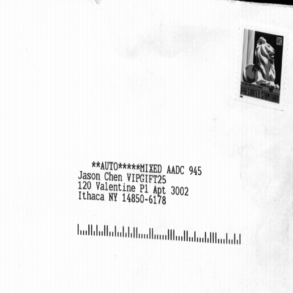 This problem was suggested by Professor T.W. Parks and Professor S.S. Hemami of the School of Electrical and Computer Engineering and completed under their guidance.  The project was performed under the auspices of Lockheed Martin Distribution Technologies (Owego, NY), a key developer and manufacturer of postal systems.  Images used were acquired by real postal scanning machines in Owego.  A presentation and a report were given to the company at the conclusion of the project.