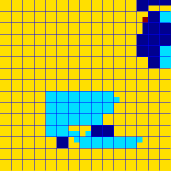 (yellow = background, dark blue = picture, light blue = text, maroon = unknown)