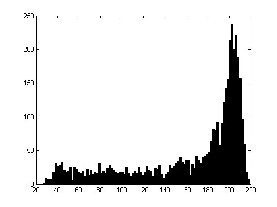 Figure 3: Pixel Intensity Histogram for Postal Text.