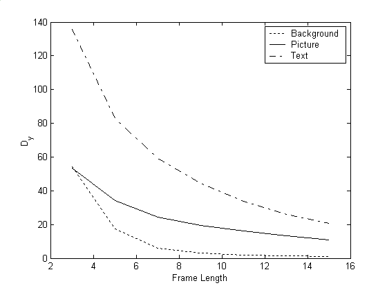 Figure 5: Dy as a function of frame length for trial postal image blocks.