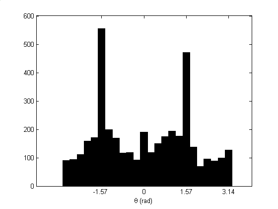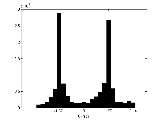 Figure 6: Histogram of text block gradient vector direction: (a) unweighted and (b) weighted.