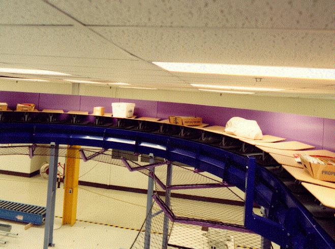 Figure 1: Example Distribution Technology Products [5]: (a) Small Parcel and Bundle Sorter, (b) Tray Management System.