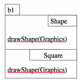 the drawShape method in Shape; they should write overriding methods in the appropriate subclasses. But