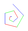 a series of 40 5-sided polygons of side length 35, the first started at angle 90,