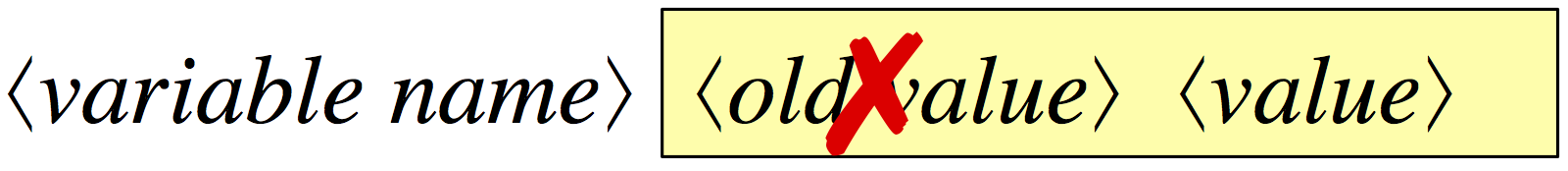 we reassign a variable, old values are crossed out when they are replaced by new ones.