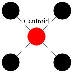 example of a 4-point cluster (black circles) with a centroid (red circle) that is not one of the