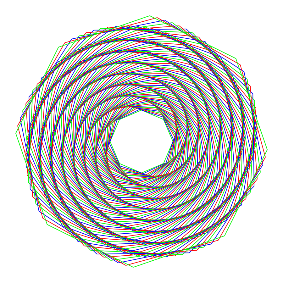 One of the interesting features of Gosper islands is that are capable of tiling the plane, just like a hexagon does. That means we can lock their edges together to get a shape like the one shown below.