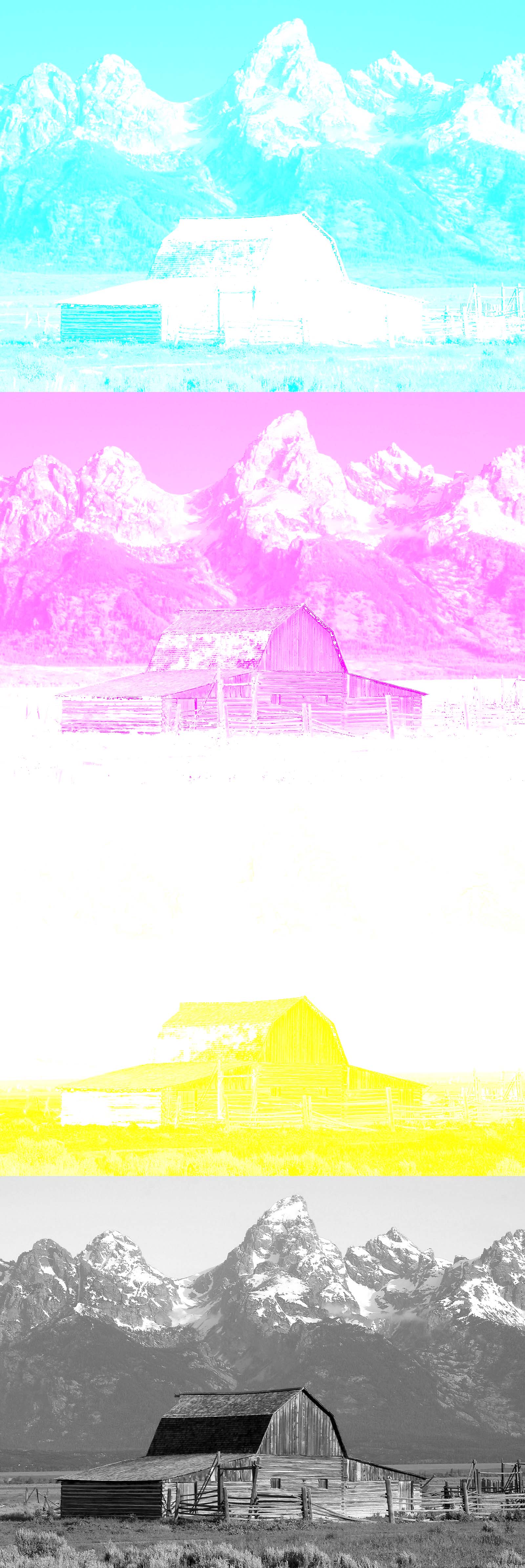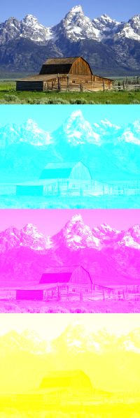 (equal parts red, green, and blue), and the colors of these inks are chosen so that cyan ink