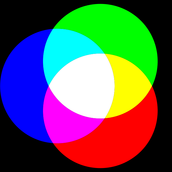 mixed to produce other colors, as shown in the image to the left. Black is the absence of color;