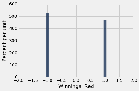 new_winnings = spin.column('Winnings: Red')