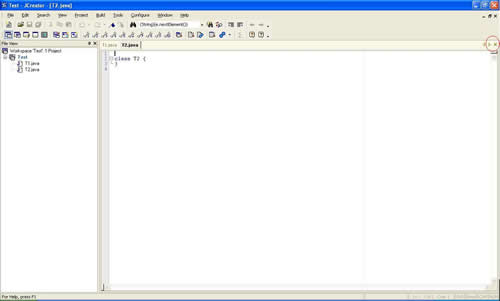 JCreator allows you to open multiple files simultaneously tabbing them at the top as you see in the picture below. Simply click on a tab and the corresponding file will appear in front of you and be the one you are currently working in. In the picture below notice the "x" circled in top right. It will close the currently selected file. The two buttons simply shift the file tab to the right or left.