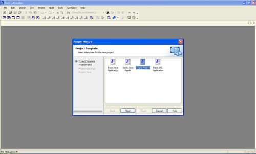 To create a project, open up JCreator and close all the wizards and windows that appear. Go to File -> New -> Project. A Project Wizard will popup.