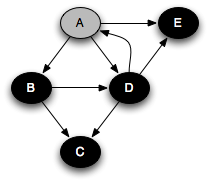 For example, in the traversal example above, we would get the ordering A, B, D, E, C, which can be seen by looking at the order in which nodes turn black. This ordering clearly is a topological sort of the graph.
