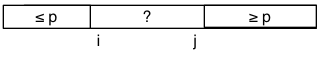 We need an invariant that starts out describing the initial state and ends up describing the final state. As the following diagram suggests, the invariant says that all elements strictly to the left of i are at most p, and all elements strictly to the right of j are no less than p.