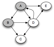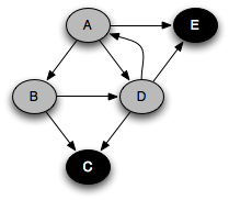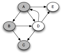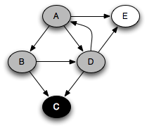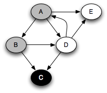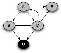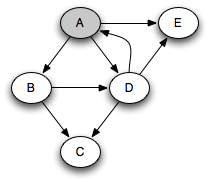 Clearly, nodes are popped in distance order: A, B, D, E, C. This is very useful when we are trying to find the shortest path through the graph to something. When a queue is used in this way, it is known as a worklist; it keeps track of work left to be done.