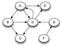 If we want to search the whole graph, then a single recursive traversal may not suffice. If we had started a traversal with node C, we would miss all the rest of the nodes in the graph. To do a depth-first search of an entire graph, we call DFS on an arbitrary unvisited node, and repeat until every node has been visited. For example, consider the original graph expanded with two new nodes F and G: