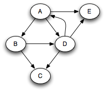 Clearly, nodes are popped in distance order: A, B, D, E, C. This is very useful when we are trying to find the shortest path through the graph to something. When a queue is used in this way, it is known as a worklist; it keeps track of work left to be done.