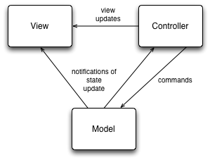 This observation leads to the Model-View-Controller (MVC) pattern, in which the application classes are separated into one of three categories: the model, which contains the important application state and operations, and does not refer to the GUI classes; the view, which provides a graphical view of the model; and the controller, which handles user input and translates it into either changes to the view or commands to be performed on the model.