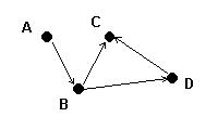 directed graph. The vertices are A, B, C, and D, or in set notation, V = {A, B, C, D}. The