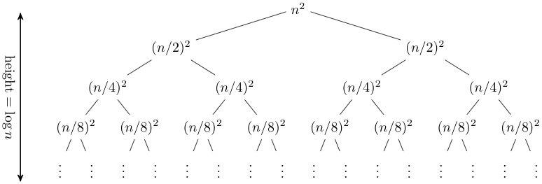 In this case, it is straightforward to sum across each row of the tree to obtain the total work done at a given level:
