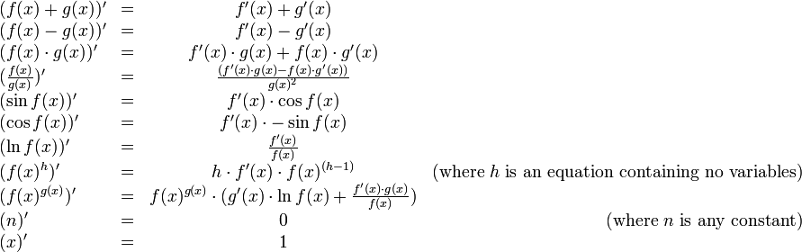 This rule tells how to form the derivative of the composition of two functions if we know the derivatives of the two functions. With the help of this rule, we can write the derivatives for all the operators in our language: