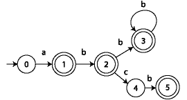 a b c accept ============== 0 1 - - F 1 - 2 - T 2 - 3 4 T 3 - 3 - T 4 - 5 - F 5 - - - T