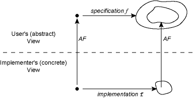 (if you see a little box it should really be Í)That is, the commutation holds with the proviso that the specification may permit more behaviors than the implementation actually exhibits, as illustrated in this figure: