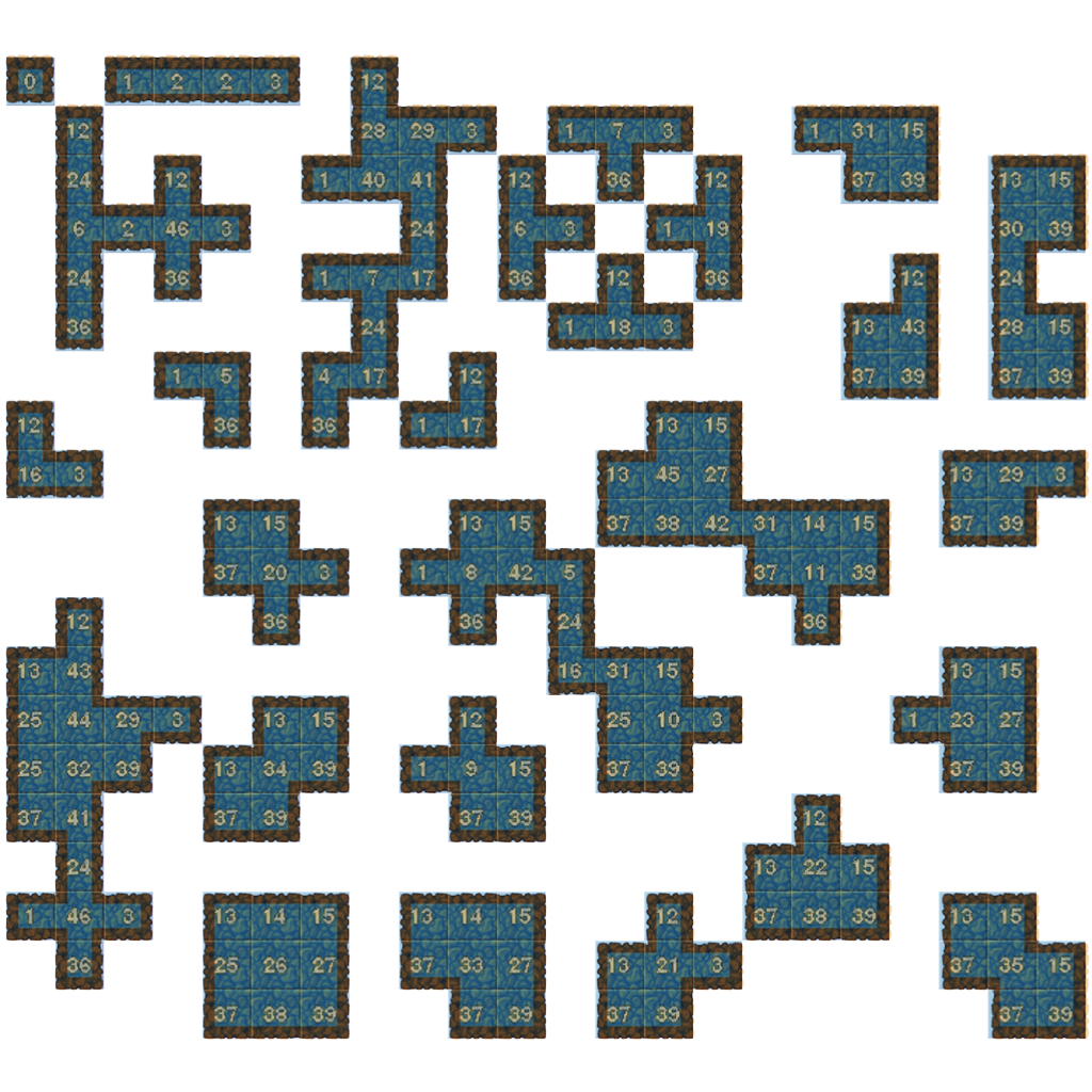 Now it’s time to actually create your tile set, using the template above as a guide. First, tile your Block 9 texture to fill all the light blue sections on the template. If you created your Block 0 texture correctly, all the blocks should look seamless. Your resulting image should resemble the Base image shown above.