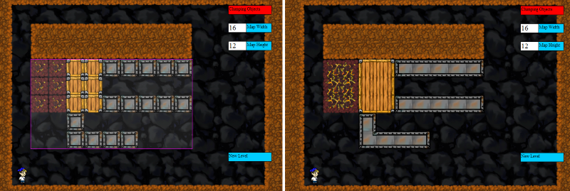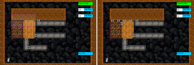 To import a saved game file, press the O key. You will see a dialog box asking for a file. Choose your previously created level. If you want to try this out right away, use this example-level.txt file. When you load that level, it should look like the image below: