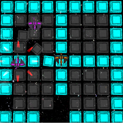In this game, the player controls a ship on a large, 2-dimensional game board made out of tiles. You move the ship around the board by using the arrow keys. The spacebar fires photons in all directions from the ship. When a ship is hit by a photon, it gets pushed backward and the tile it used to be hovering over falls out of the board into space. If a ship is pushed by a photon off the board, the ship falls into oblivion and loses the match. The objective is to be the last ship remaining on the game board.